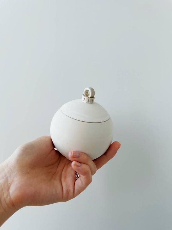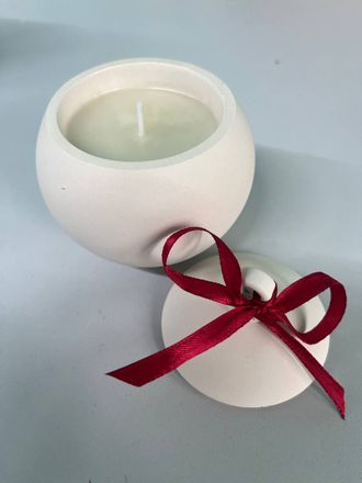 Ароматическая свеча в форме шара с декором атласной лентой.