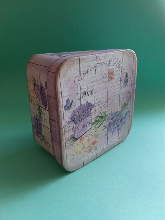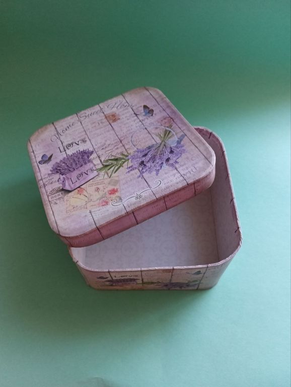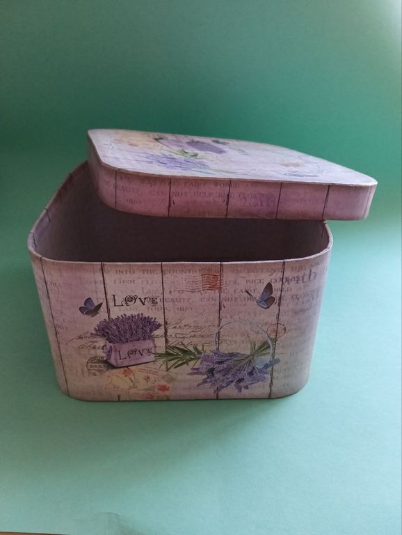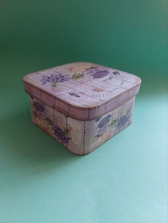 Коробка подарочная из картона прямоугольной формы с мотивом лаванды.
