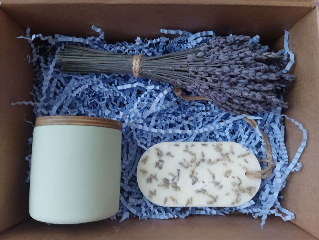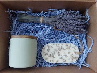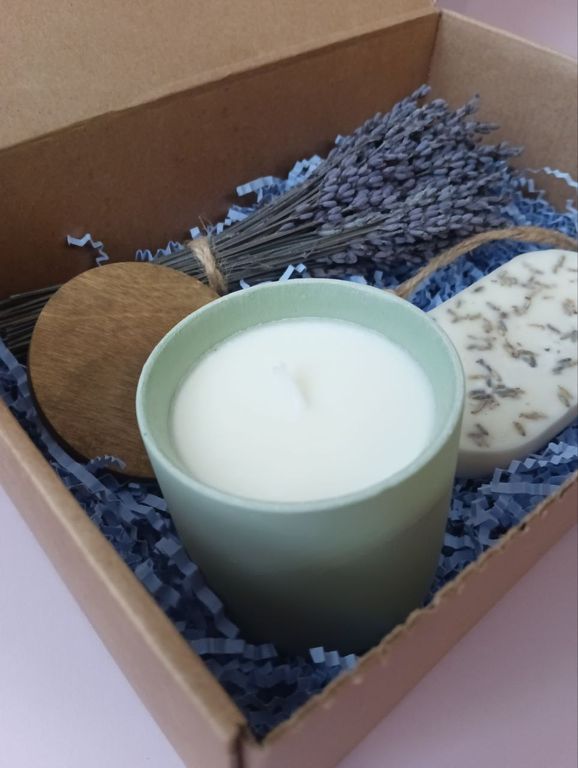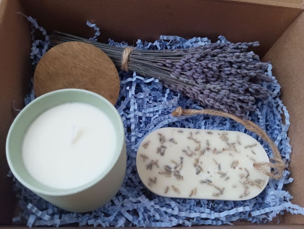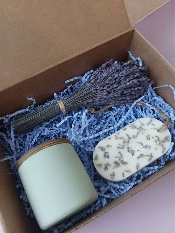 Подарочный набор из соевого воска ручной работы с ароматом лаванды.