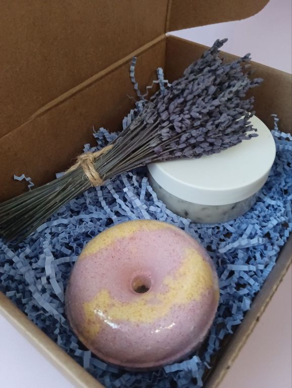 Подарочный набор "Пончик, скраб и букет лаванды"