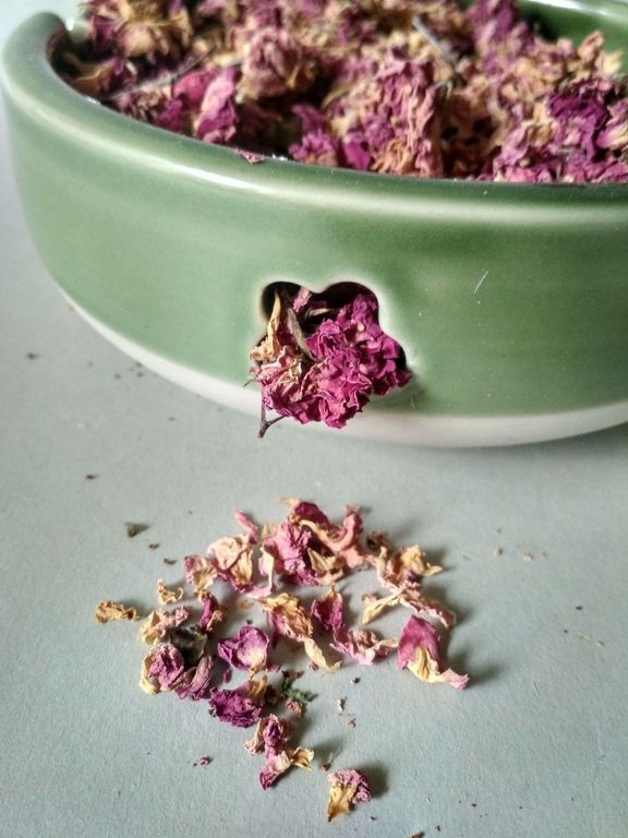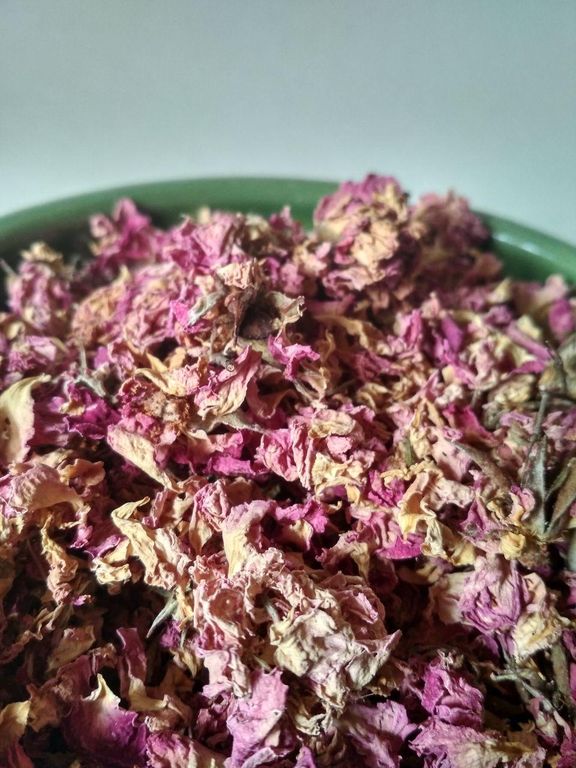 Сушеные лепестки и бутоны чайной розы для наполнения саше или кулинарии.