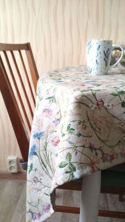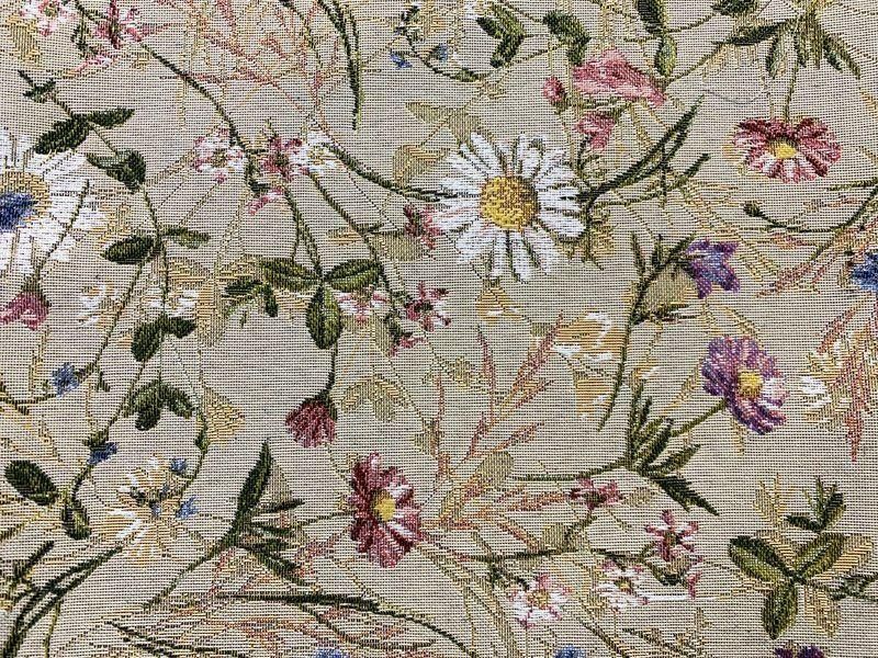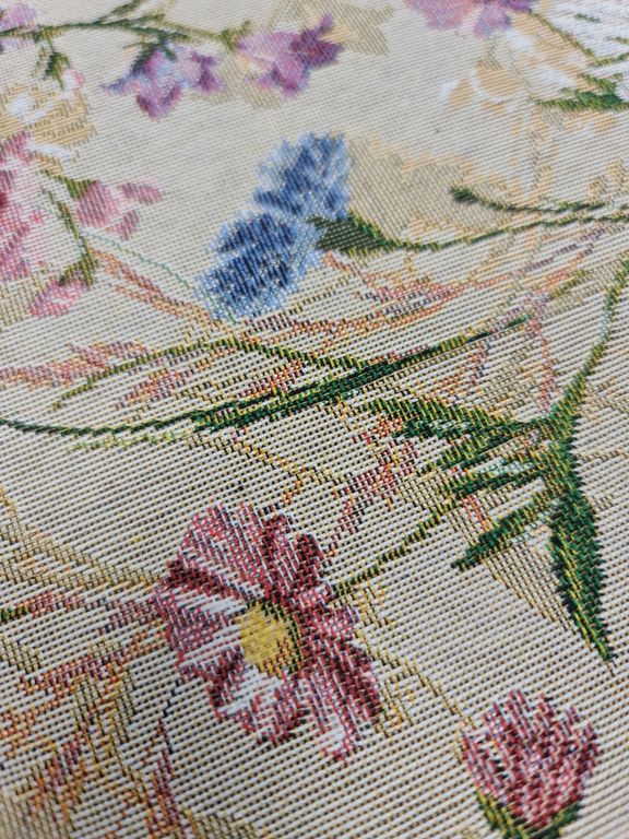 Ткань гобеленовая с изображением полевых цветов и трав.