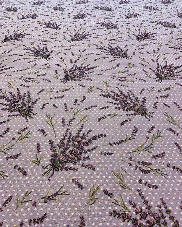 Ткань гобеленовая с изображением букетов лаванды.